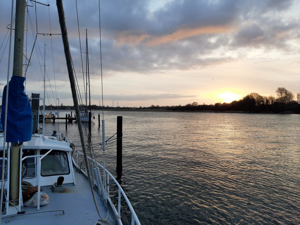 Nun liegt die NO LIMITS am Steg in Arnis und wartet auf Durchlass in Kappeln.