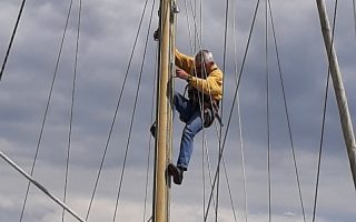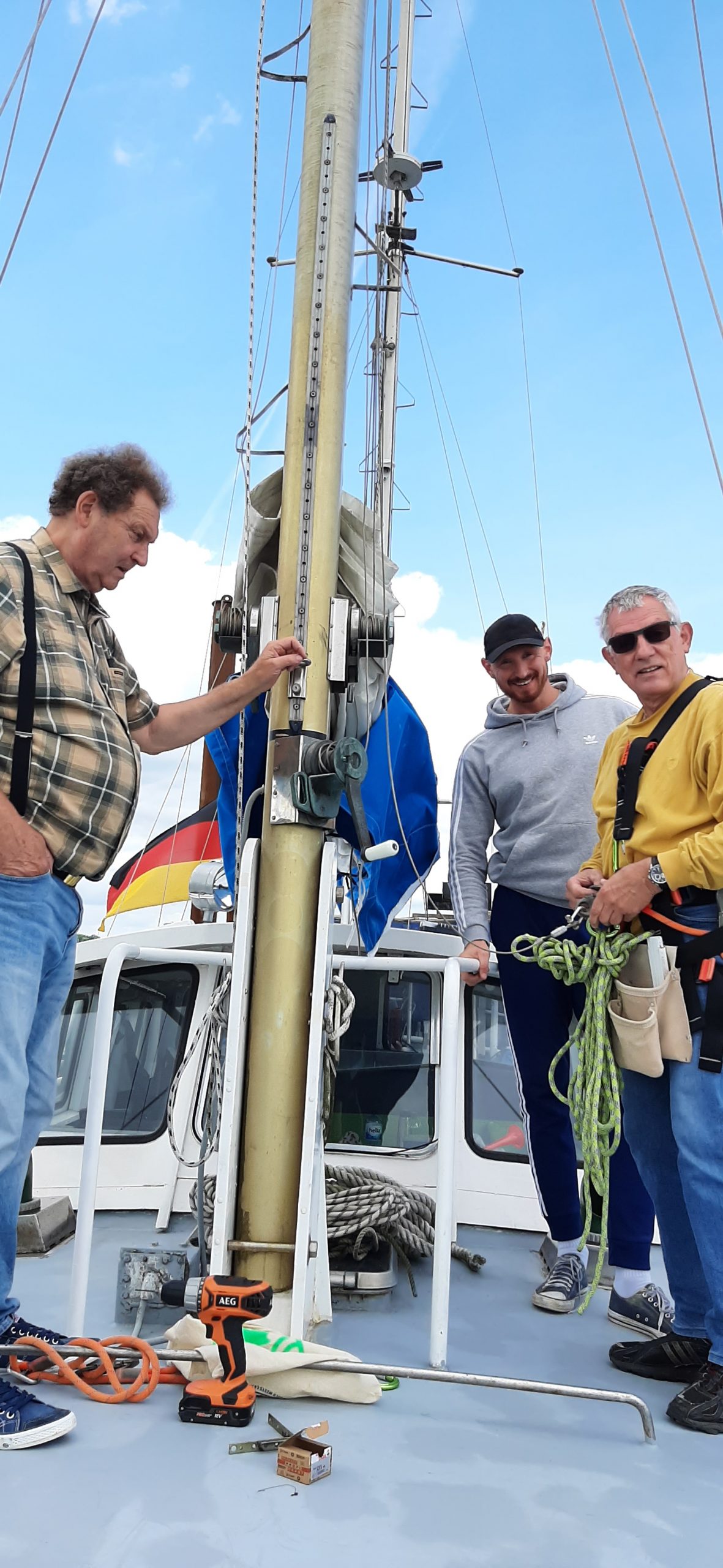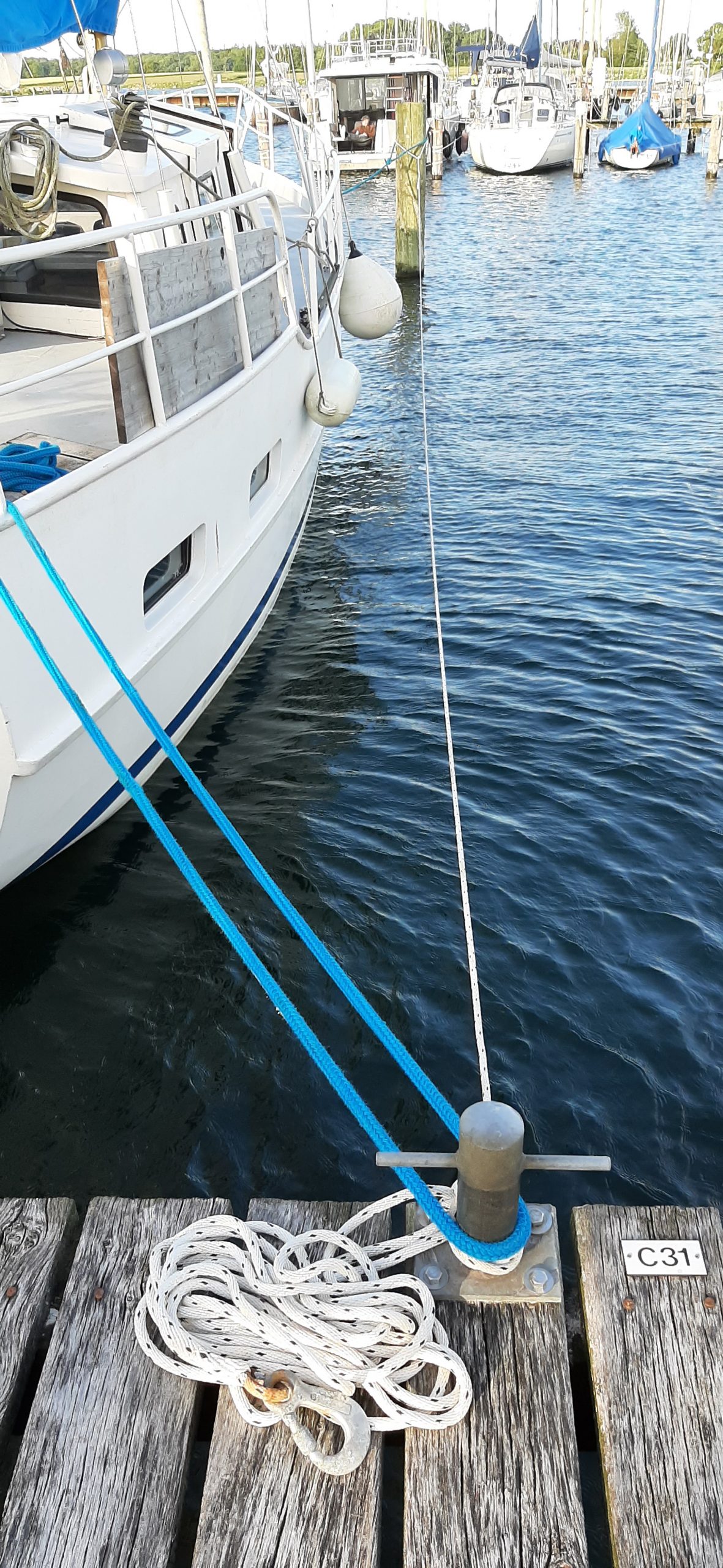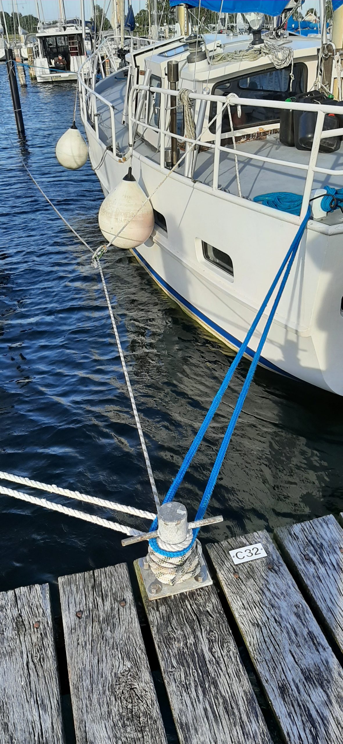 Heute haben wir die Führungsleinen angebracht – in blau, passend zu den Persenings. Später haben wir noch die Umgebung erkundet.